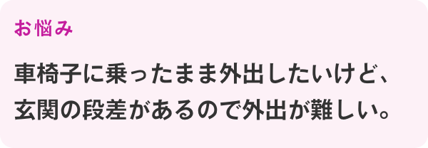 介護用スロープには折りたたむことができるタイプや軽量なタイプ、屋内の段差を解消するコンパクトなタイプなど様々な種類があります。ご自宅の玄関に合ったスロープを選定いたします。