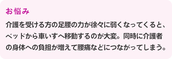 ベッドや椅子、床上からの立ち上がり時に使用することでお身体への負担軽減が出来ます。