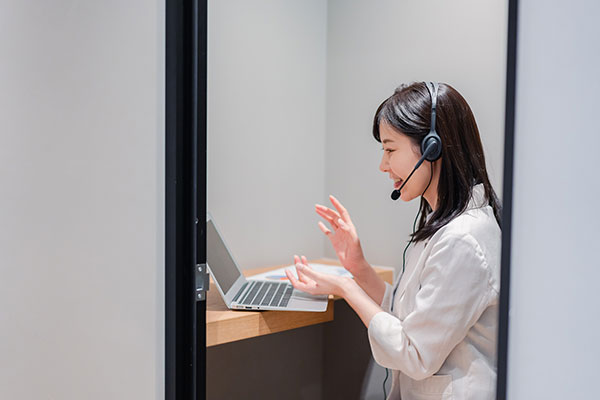 コロナ感染対策の一環、もしくは遠方のお客様とZOOMを使用した会議などを行っておられる場合も、専用スペースを設置。周りの音が入ってしまう、周りの人が気になる、Wi-Fiが不安定などのお悩みを解決します。