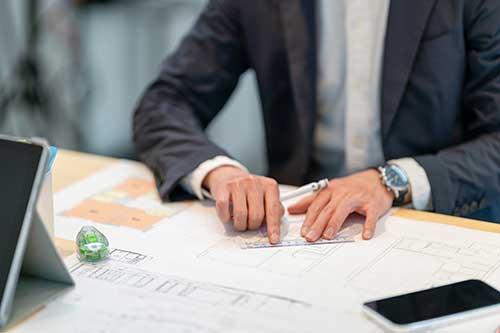 お客様よりお聞きしたご要望をもとに内装やレイアウト、ゾーニング、レイアウト、 防災・導線設計、インテリアデザイン、ファニチャー選定、AV計画、LAN、セキュリティ、安全性など様々な面を踏まえた上でご提案をさせていただきます。