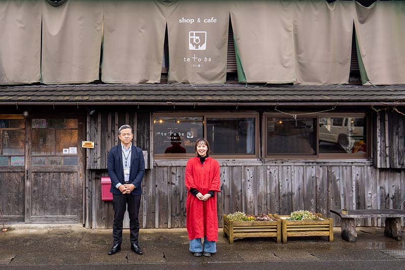 長崎県五島列島富江町に位置し、かつお節店だった築140年の空き家を地域住民と”手と手をあわせて”改装し営業しています。カフェを経営する傍ら、「五島 手しごと市」の開催やデザインなどその活動は多岐にわたります。2020年には宿泊施設「ホステルta bi to <旅人>」がオープン。近年ではte to ba<手と場>によるウエディング事業「Goto Wedding」を手がけています。
